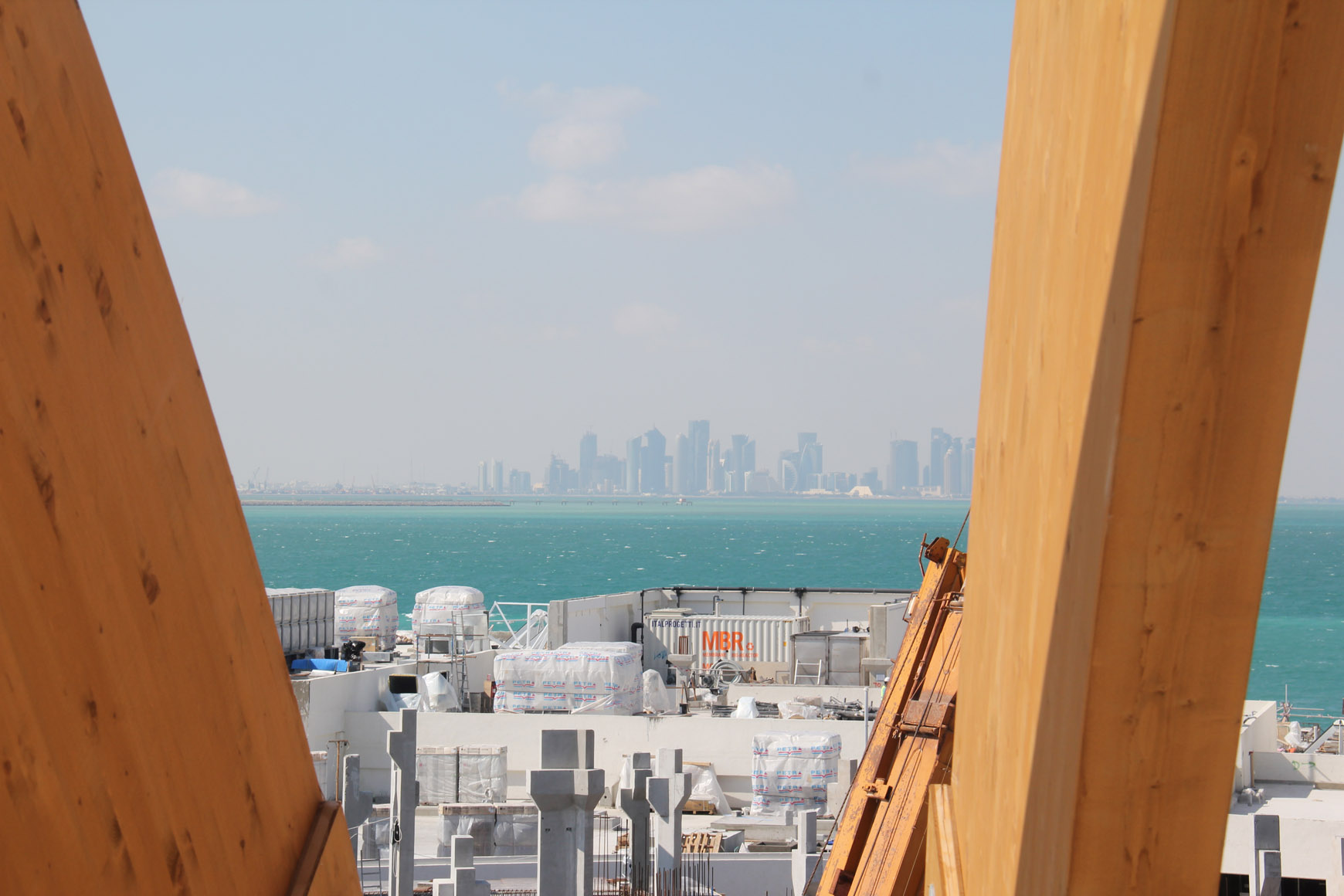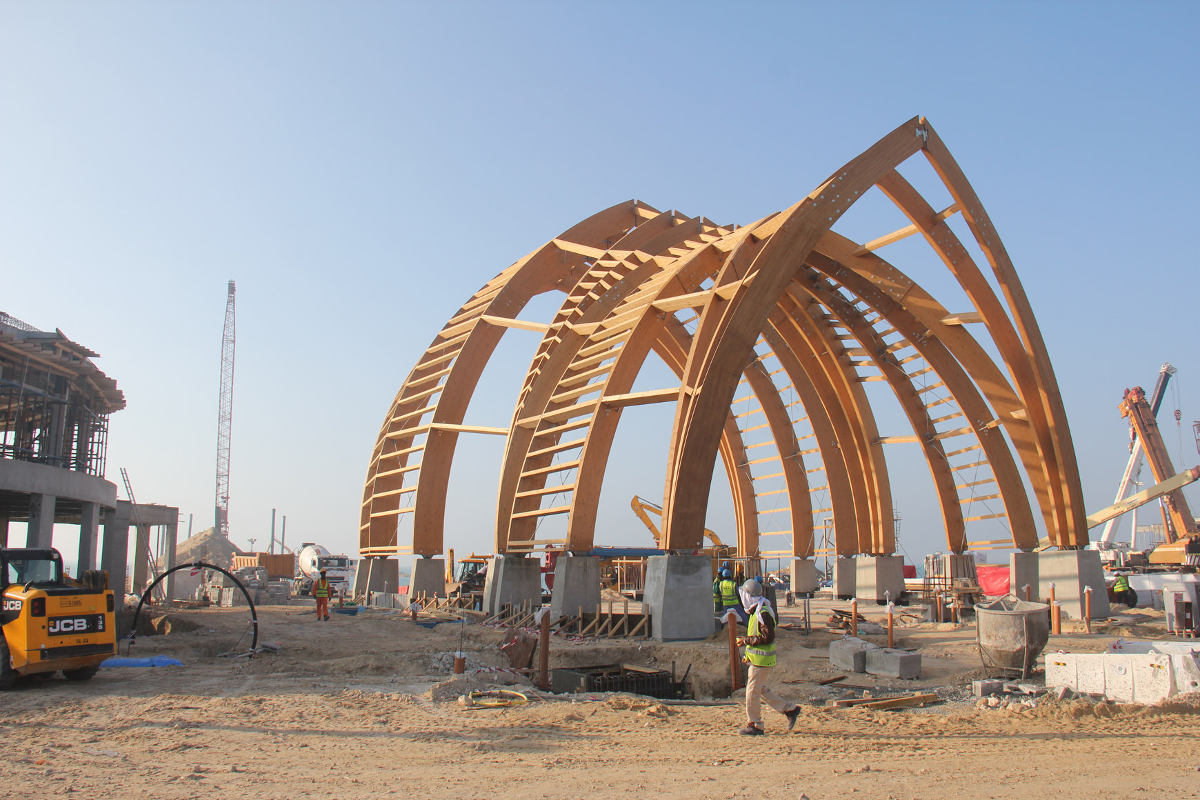 Il padiglione d’ingresso del Banana Island Resort Doha by Anantara è un’opera architettonica che reinterpreta in chiave contemporanea le forme tradizionali arabe. L’orditura complessa delle travi e la loro disposizione armoniosa danno vita a una filigrana di strutture curvate e intrecciate, capace di fondere estetica e funzionalità. Un perfetto esempio di come il design ispirato alla tradizione possa dialogare con materiali moderni e sostenibili, trasformando un semplice ingresso in un simbolo di eleganza e innovazione