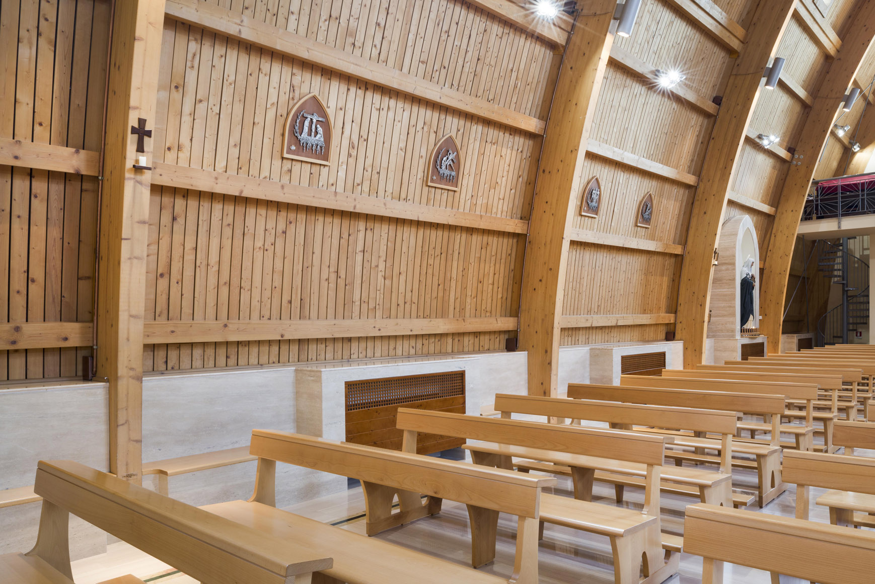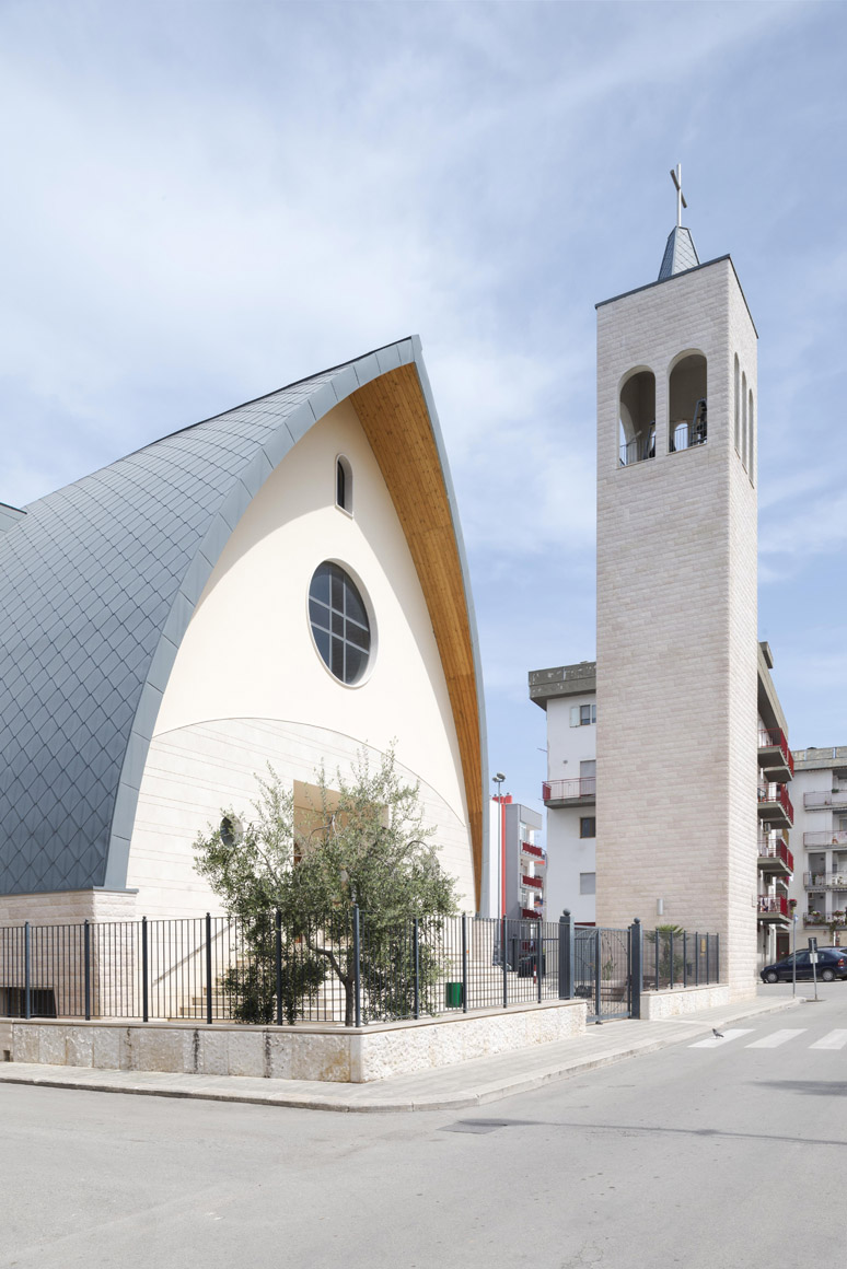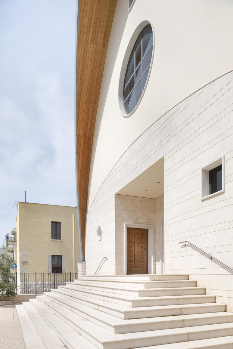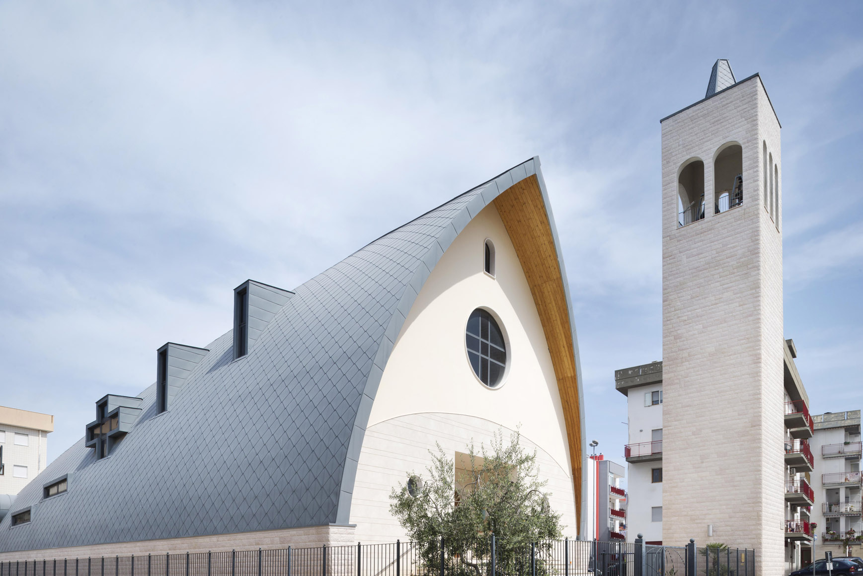 Il progetto, si ispira profondamente alla figura della Santa: dall’esterno, la facciata richiama il suo mantello, un gesto di protezione e accoglienza, mentre la sua forma evocativa ricorda una barca rovesciata, simbolo di rifugio e legame con il mare, elemento vitale per la comunità locale.